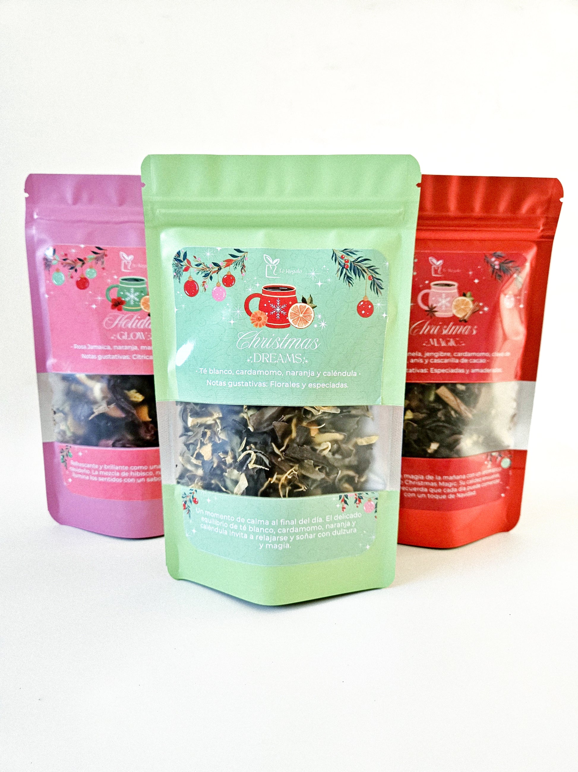 • Christmas Dreams: Té blanco, cardamomo, naranja y caléndula. (Suave y aromático, ideal para la noche y los momentos de calma.)